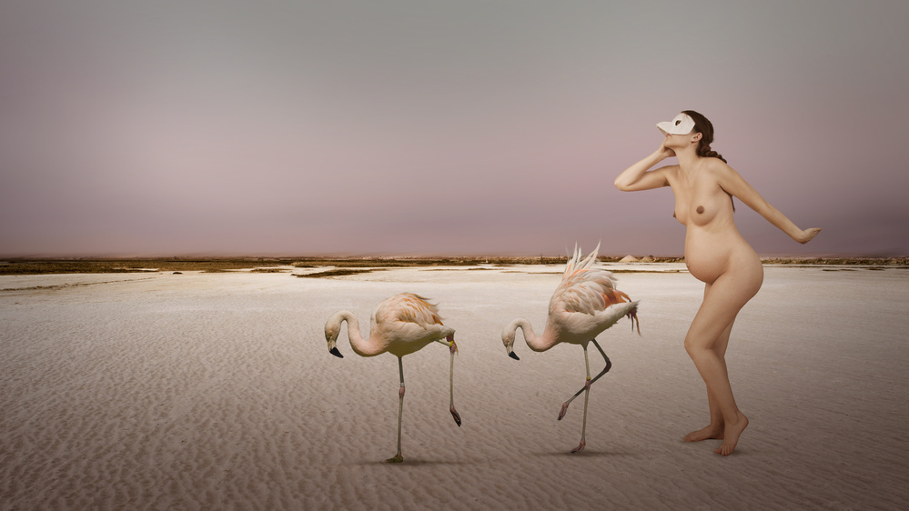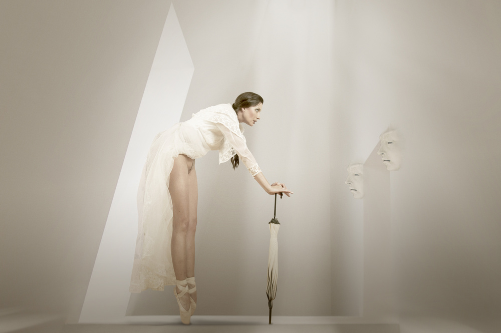 I collect the backgrounds for my montages during short trips while on holiday (abandoned places or landscapes). All elements in my photographs are taken by me. I never use stock photos.