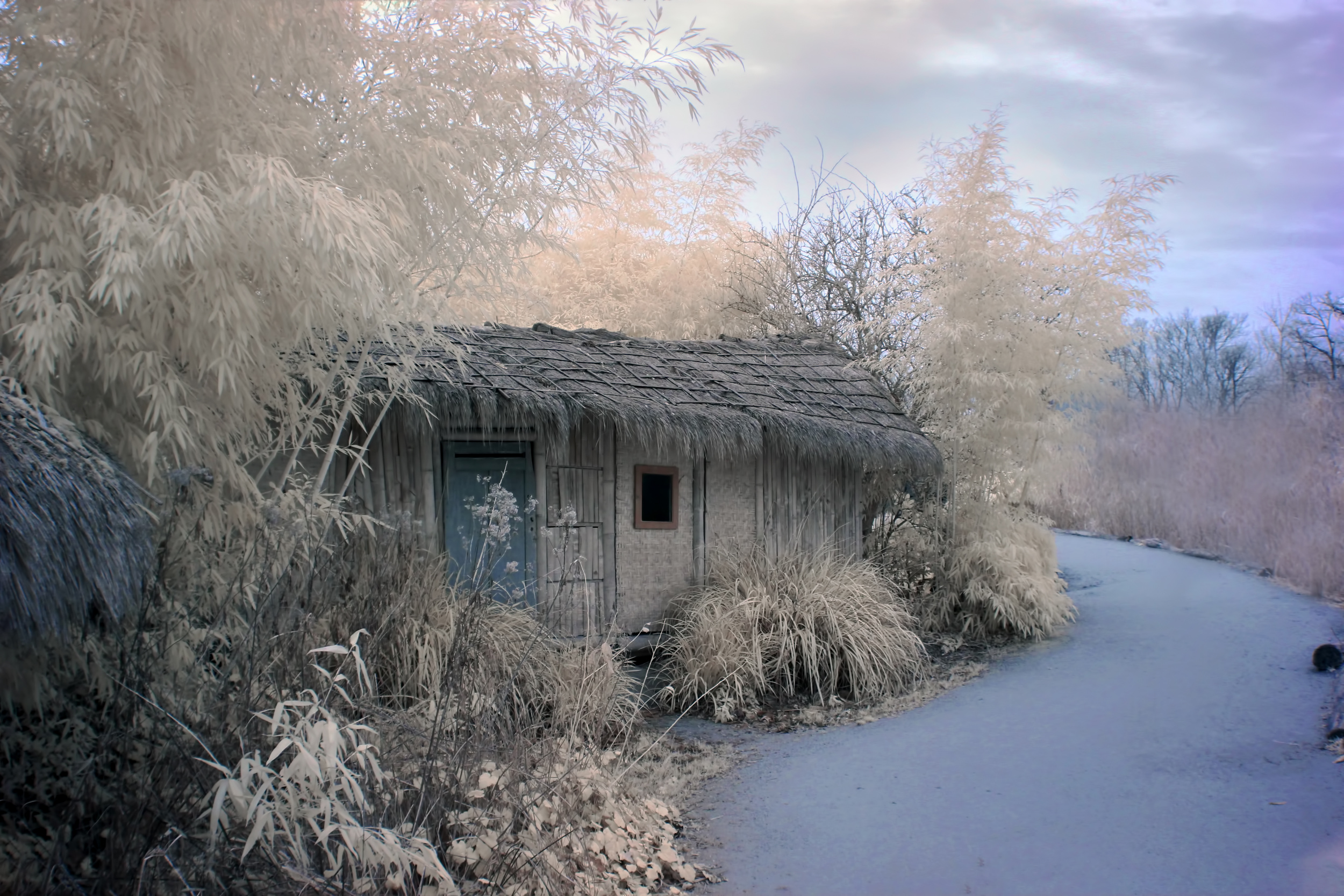 So, infrared photography is literally like reaching into the invisible and pulling back “light information” that allows the photographer to create a world that is unencumbered by reality. It is what I imagine another inhabited world, in another galaxy, might look like. After all, why wouldn’t the eyes of an alien be sensitive to different wavelengths of light than ours depending upon the type of light emitted by their sun? So perhaps, the sky on a faraway planet might appear to be purple, and leaves gold and red, and the skin of alien beings white with purple veins just beneath the surface of their skin.