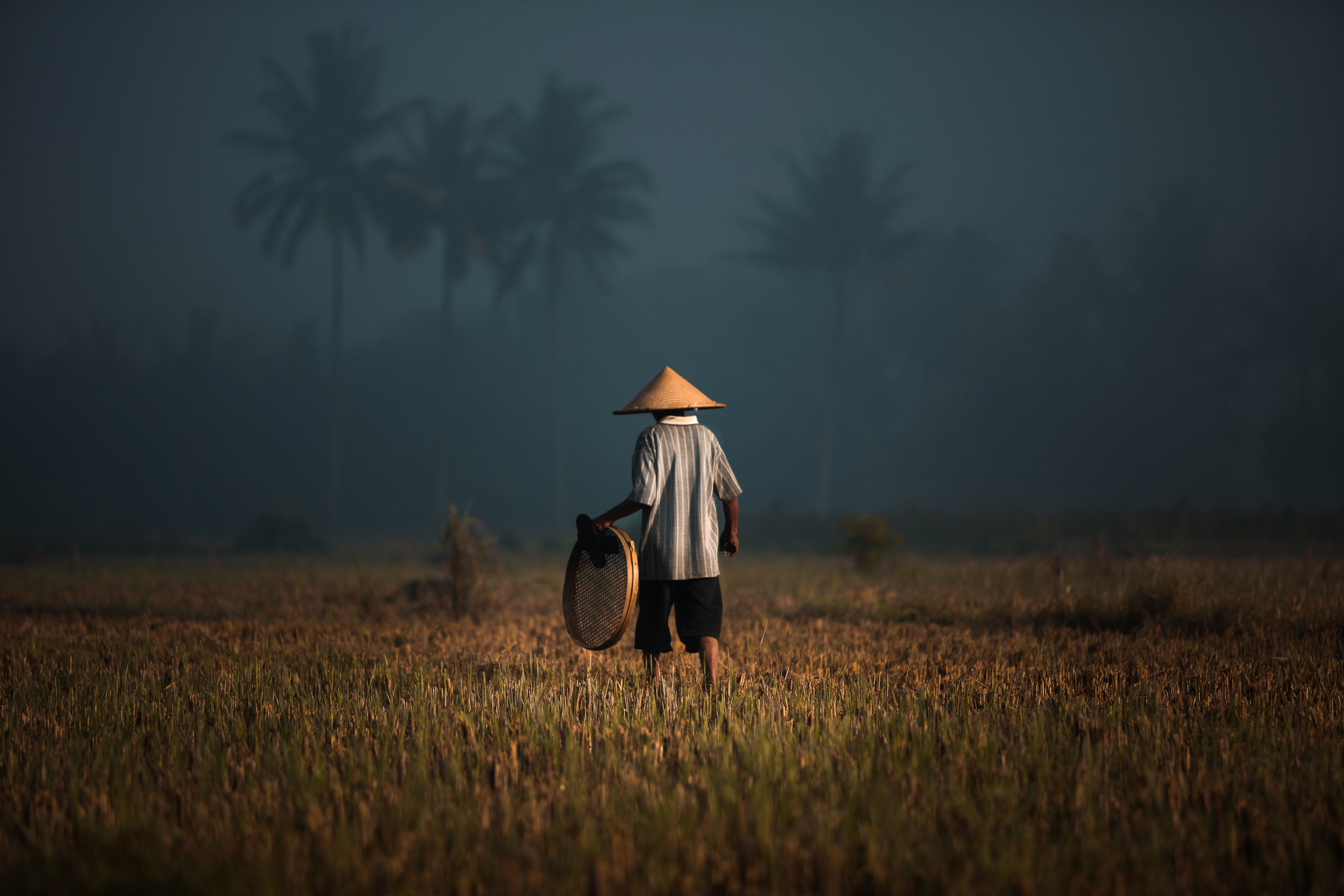 'morning sun and farmer'