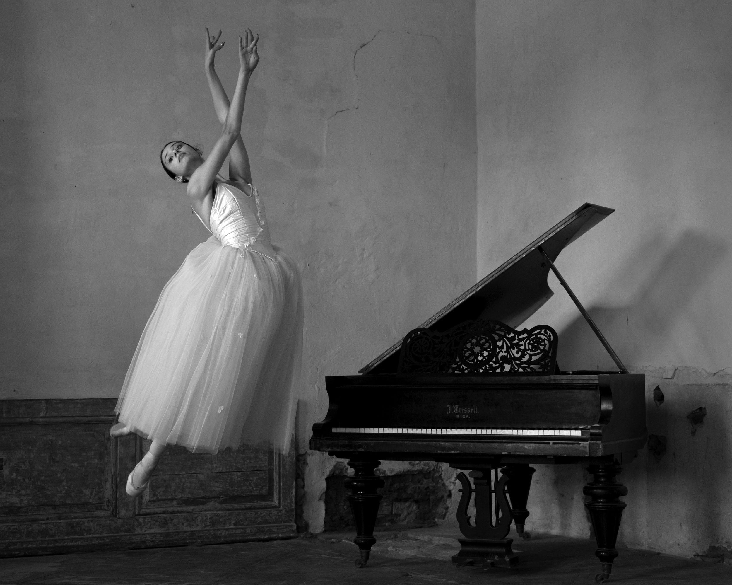 The introduction to his exhibition : My love for photography is blind, it satisfies my ego and ambitions, heals like a psychotherapist and intoxicates like an ordinary wine. Thousands of frames shooting ballet both in performances and at gala concerts in servo from prompters and sound direction rooms and many hours spent at the computer selecting pictures. However, in the end, this resulted in around ten pictures approved for publication. Ballet has its own rules. So has photography. Movements and poses must be precisely fixed. Everything has to look perfect. That’s what ballet is - perfectly precise in choreography and music, the athleticism of dancers and mind blowing realization of movements. The spring of 2020 was the time when exhibition halls and performance stages were closed. Culture was paralyzed, as a result, many professionals and also aspiring artists were left without work, training opportunities and without the attention of audiences. They trained in apartments, parks, and by the seaside. Away from people. During this quiet and inactive time, an idea emerged to invite ballet artists to collaborate, using abandoned factories, old manors, and castle spaces as the stage, which would contrast with the model, but at the same time highlighting the depressing mood of the pandemic.