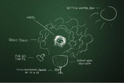 When I shoot portraits, even outdoors, I typically use off-camera lighting. My choice is the Elinchrom Ranger Quadra portable strobe with a 100cm Rotalux Deep Octa. For starters, this combination is so easy to carry around, and I only need one basic, sturdy light stand to set it up. Also, the Octa produces a wonderful soft light, there's a modeling light built into the strobe, and the batteries are powerful and long lasting. I shot this image with a Canon EOS 6D and a 135mm f/2 L lens. That lens is a beast! It has beautiful bokeh, and it's tack sharp at its widest aperture of f/2.I literally shot through the thorny bushes to create a soft, out-of-focus foreground. The setting sun behind the model created a beautiful rim light, and my strobe provided just enough frontal fill light. We, of course, had to take a lot of pictures until we got her hair looking the way we wanted. It could have been better, but I had other ideas in mind that I wanted to capture before the sun set, and we were running out of time.
