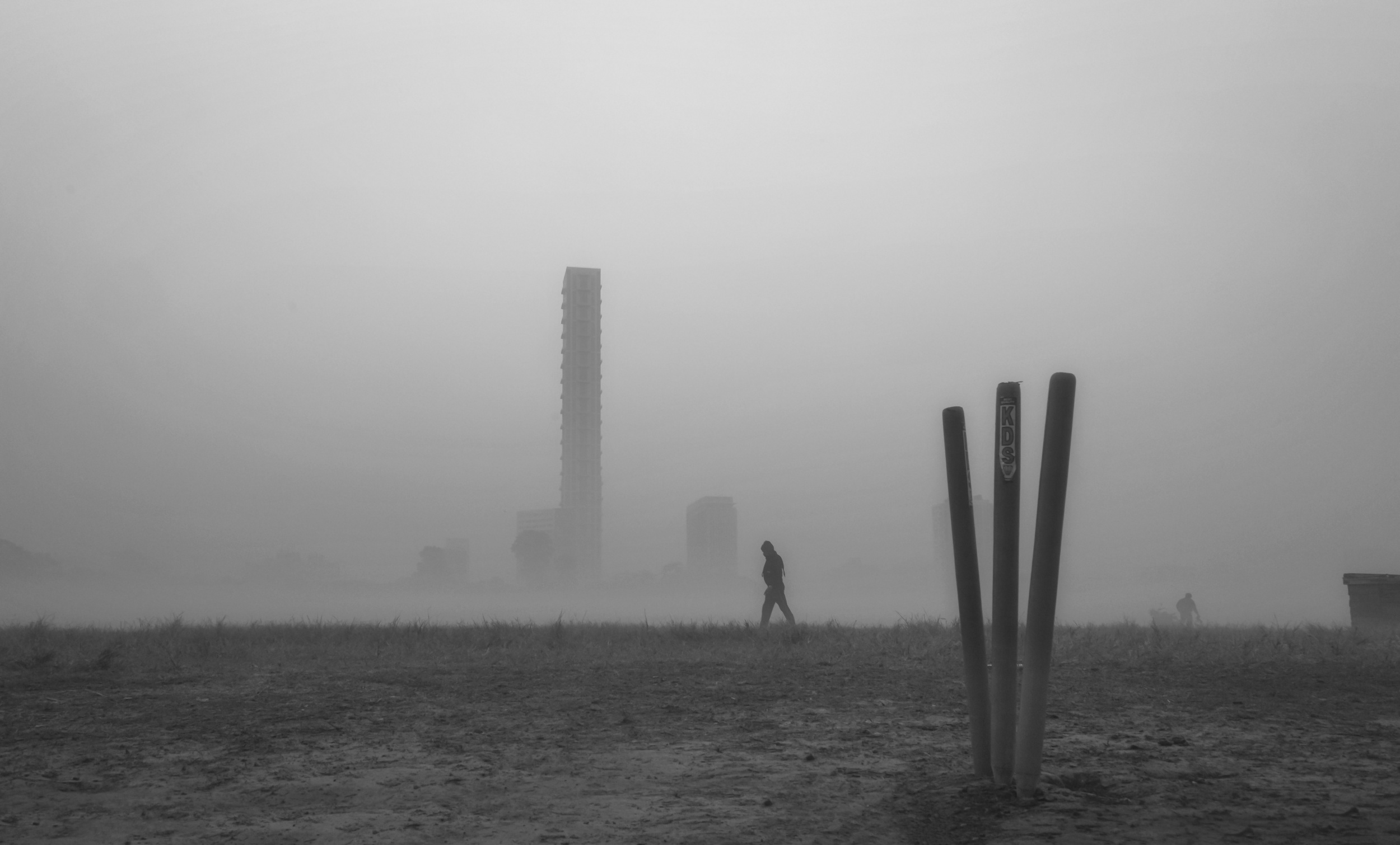 'Cricket stumps in fog'