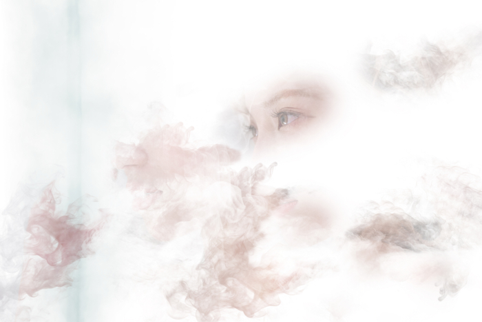 Technical Process: For this work, I used Photoshop brushes made from smoke images, applying them to specific areas of the model to make her appear as if she were dissipating. Layer masks and brushes helped refine the contours, while actual smoke overlays were added in difficult areas to create a seamless integration. Simply drawing smoke shapes can look unnatural, so I used blur filters strategically to maintain depth of field.